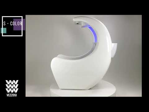 Washing station with fibreglass structure and double movement of the basin (tilting and sliding). Installing an S-Color hairdressing chair means offering a real emotional experience, thanks to the projection of colors and the possibility of associating mobile devices to play relaxing background music. It also uses massage technology, which allows a lymphatic drainage massage on the whole body.